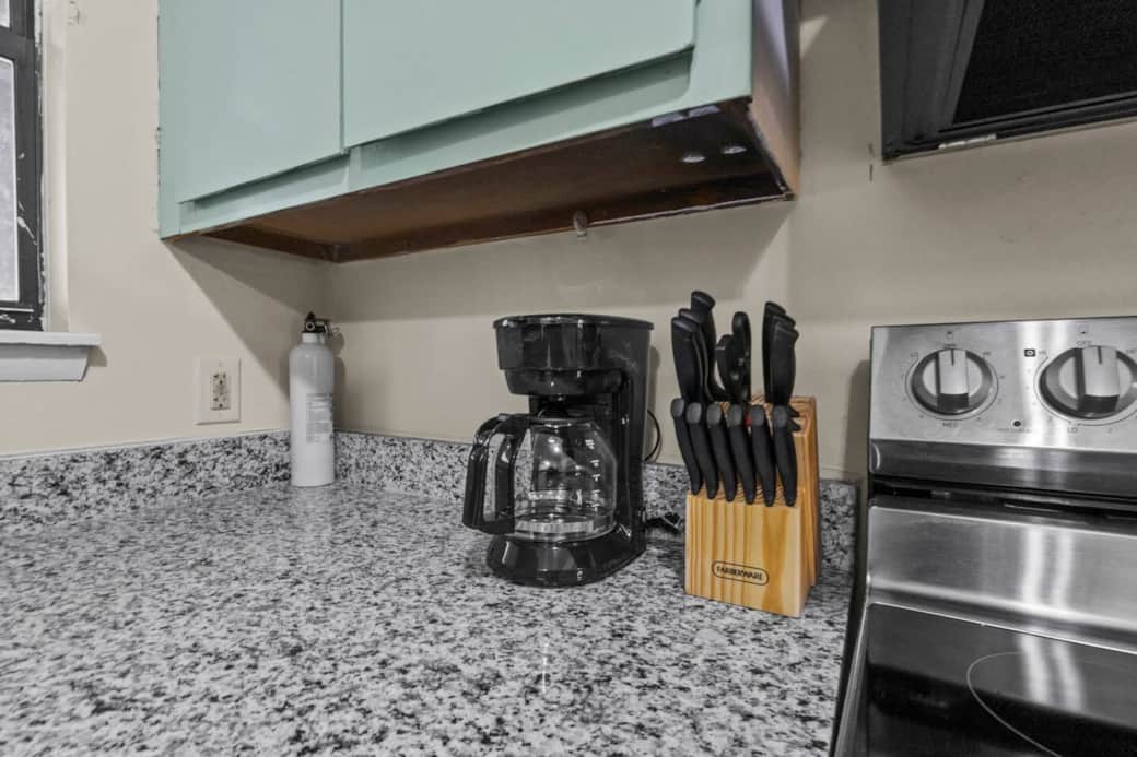 Coffee machine, Cooking utensils, Dishwasher, Kitchen stove, Kitchenette, Microwave, Oven, Refrigerator, Toaster