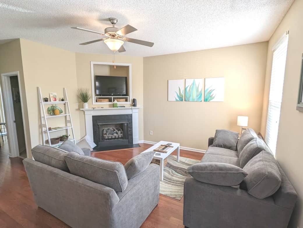 Two bedrooms each with a private bath on a quiet street in a Great Location!! 3 Miles to Lake Murray, walk to Publix and walk to restaurants. 9' Ceilings down Vaulted Ceilings upstairs, Granite countertops in kitchen, with breakfast bar and eat-in area, Tile floor in Bathrooms, 2nd Bedroom feels like a second Master Suite with it's own private bath and walk-in closet. Bright and spacious floor plan. Clean and Comfortable beds. Washer, Dryer and iron board. Wifi and 43" 4k Smart Tv.
