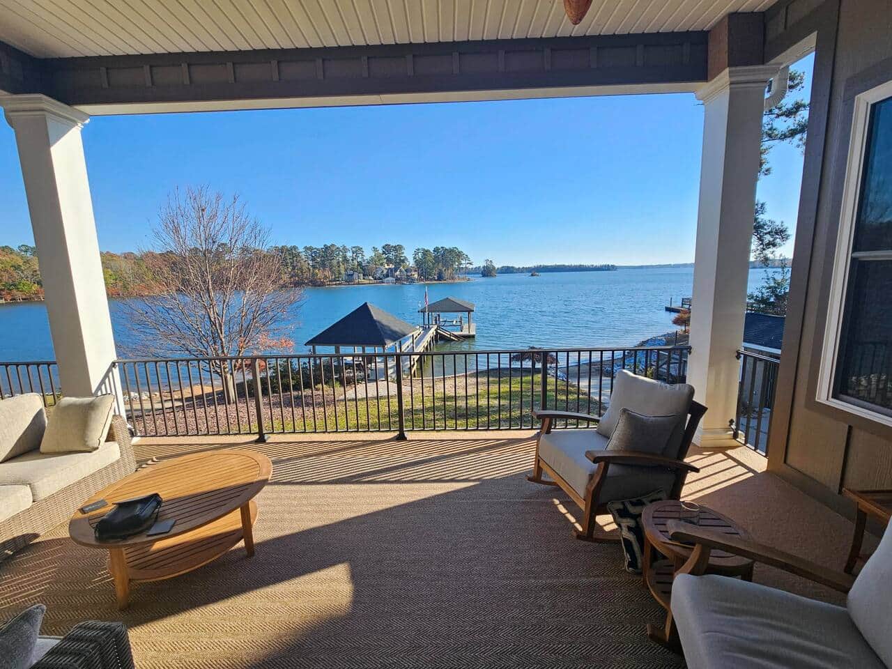 Each of the five bedrooms features a king-sized bed, ensuring every guest enjoys comfort and privacy. With five full bathrooms, there’s plenty of space for everyone to refresh after a day on the lake.
